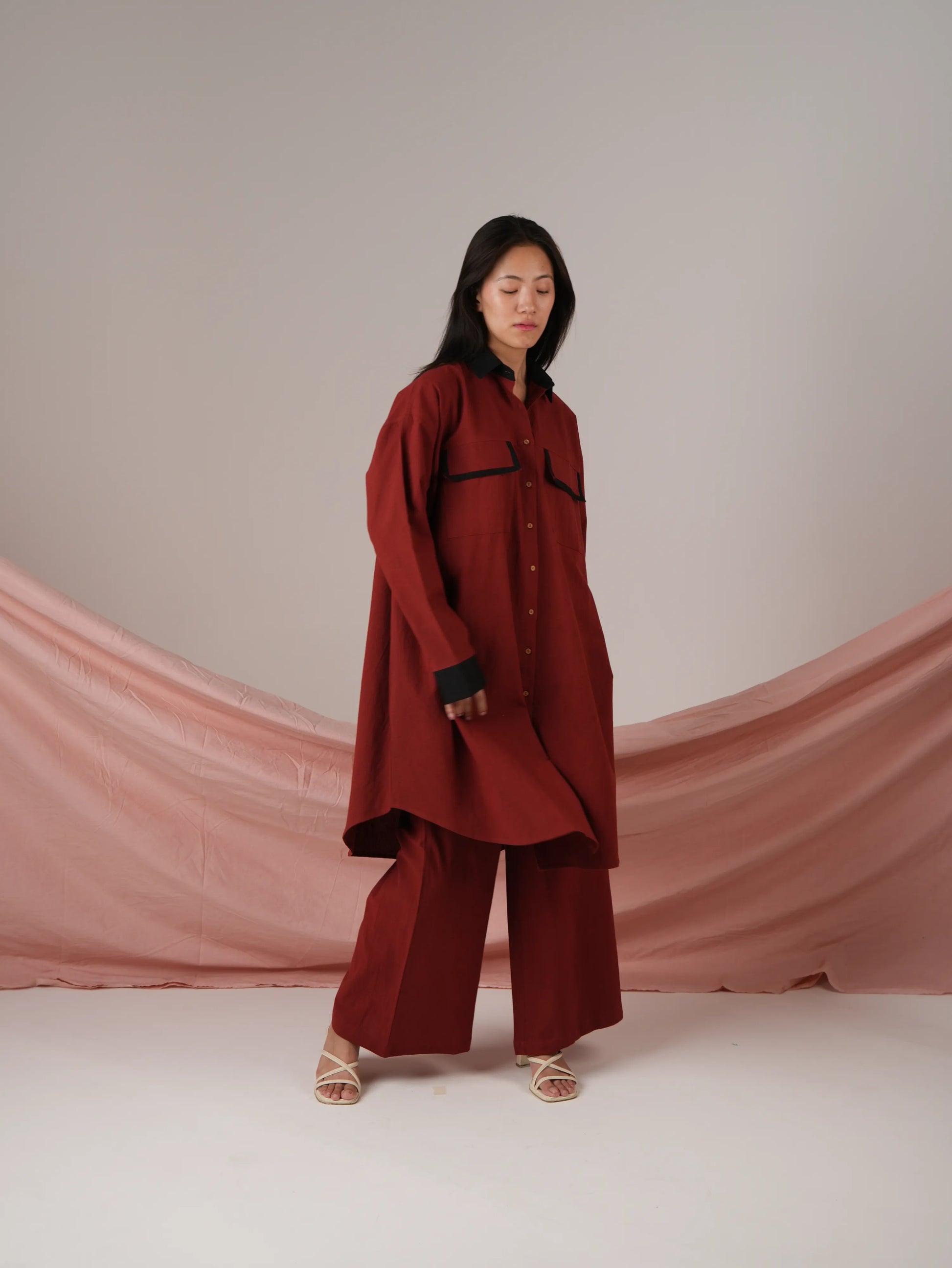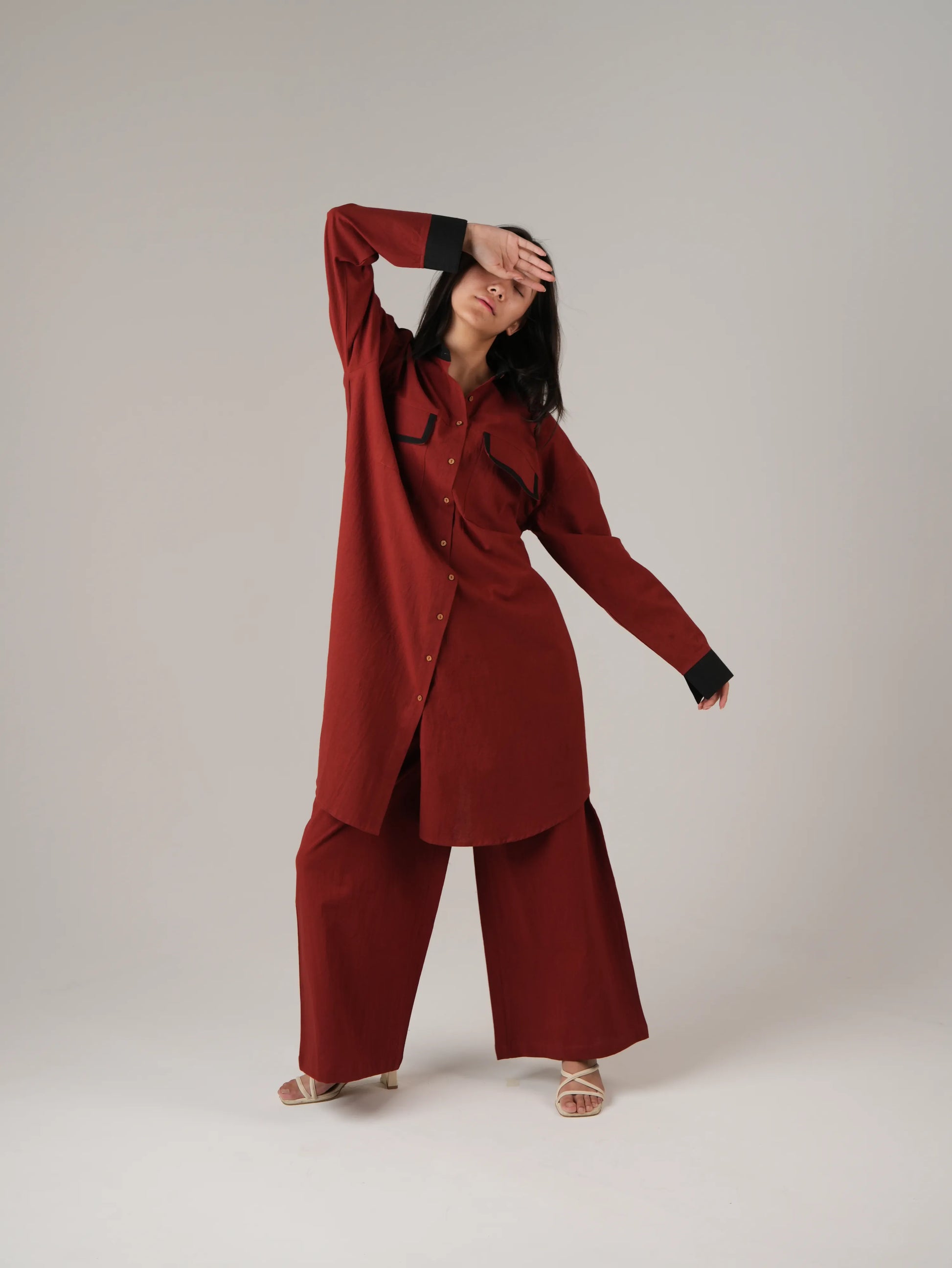 Blood Red Anti- Fit Cotton Co-ord set with Black Stripes Detailing