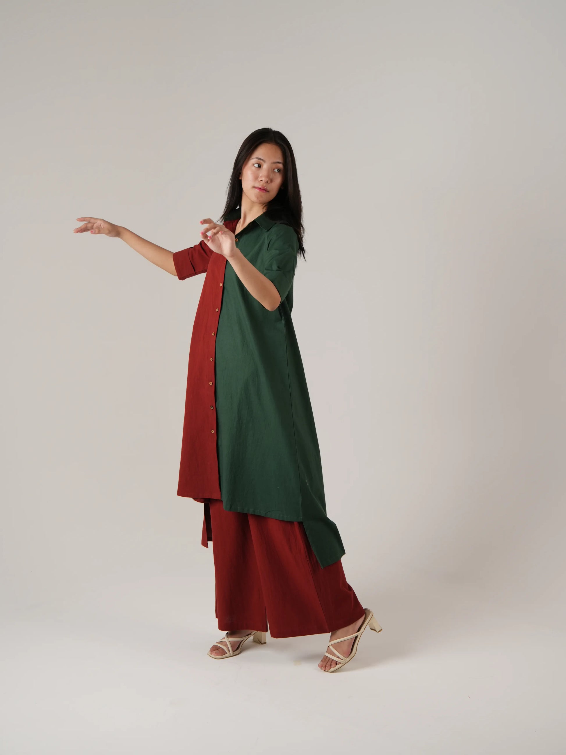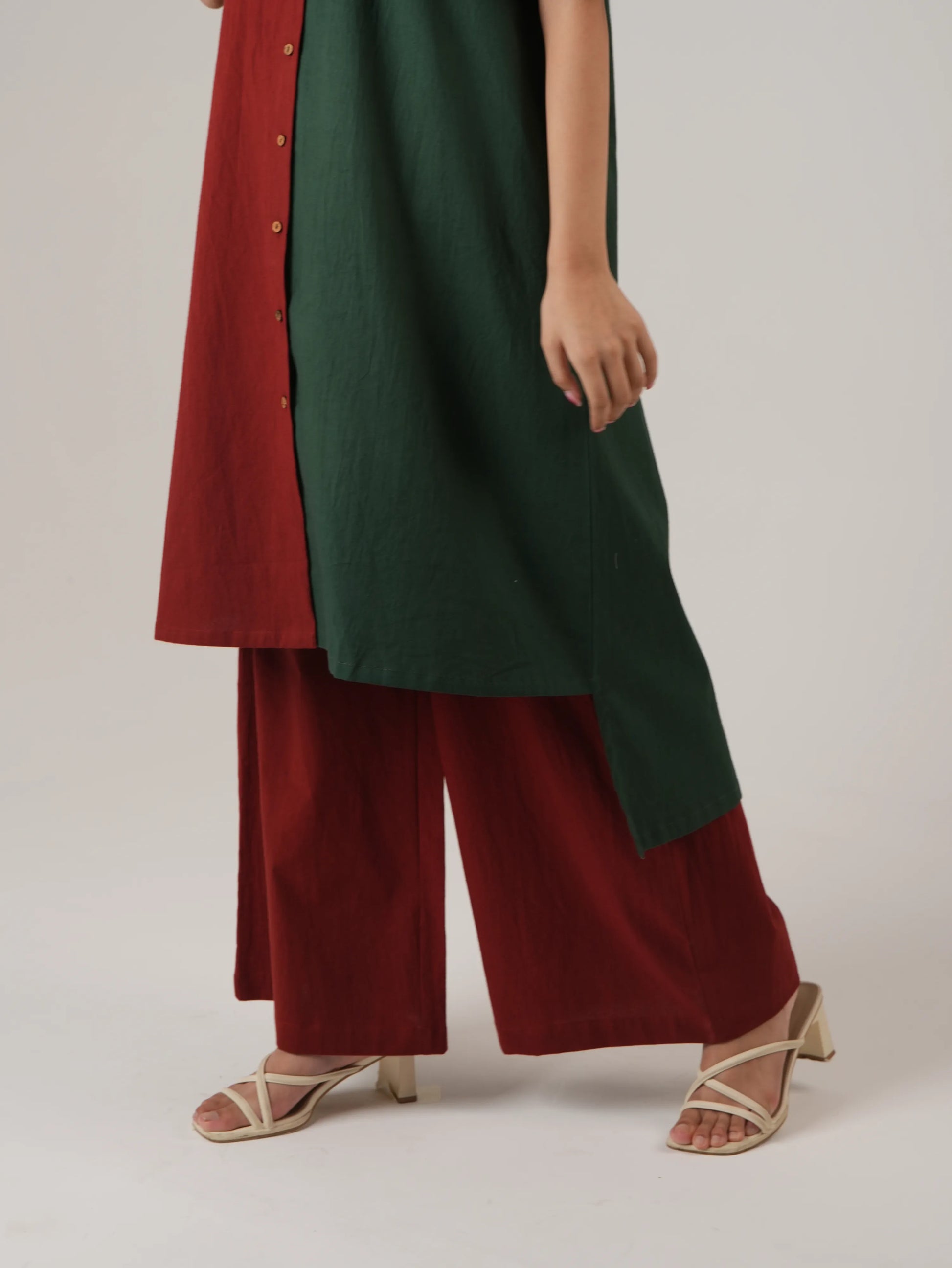 Vanshitaaz Blood Red & Dark Green Cotton Co-ord set