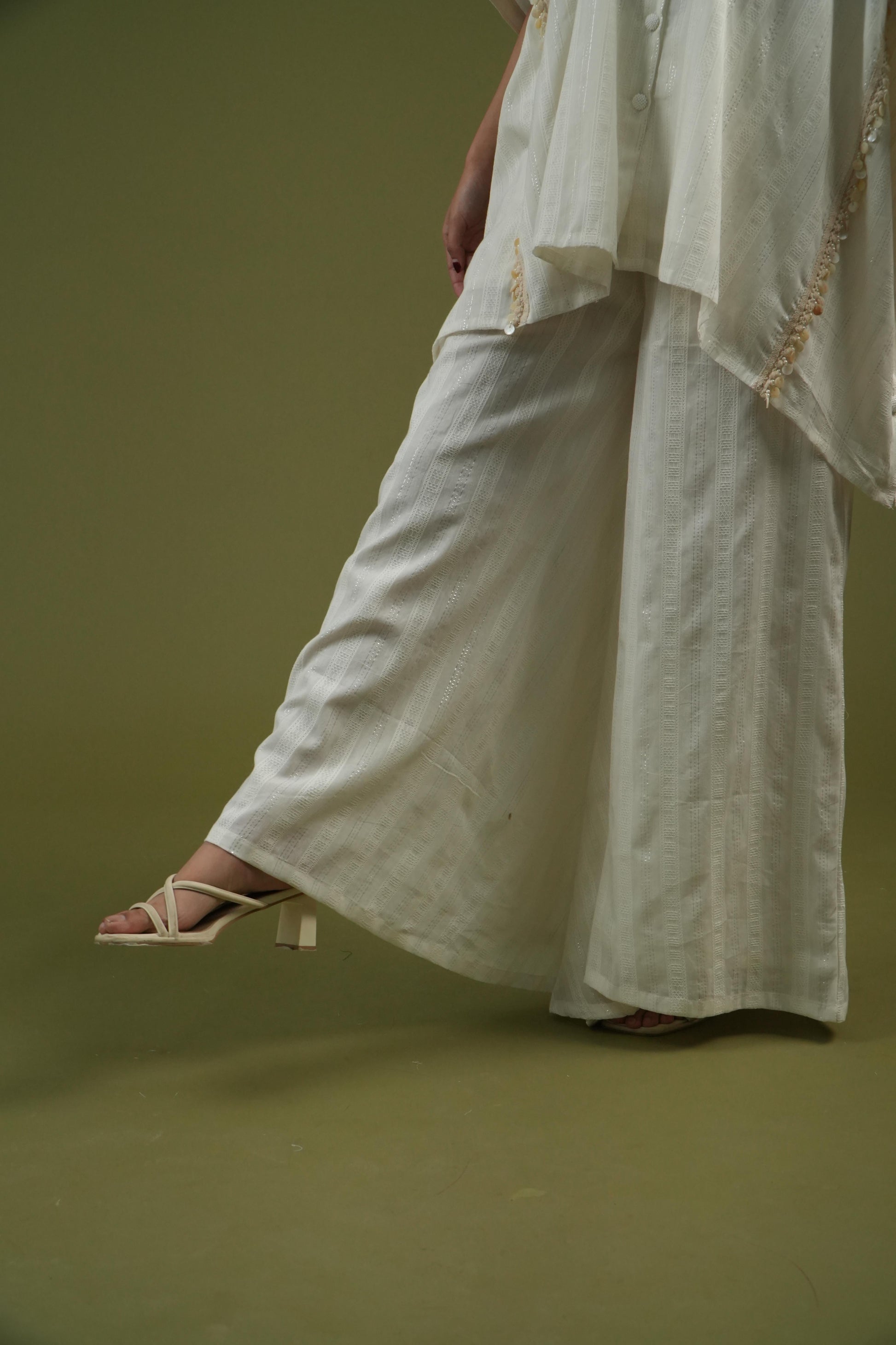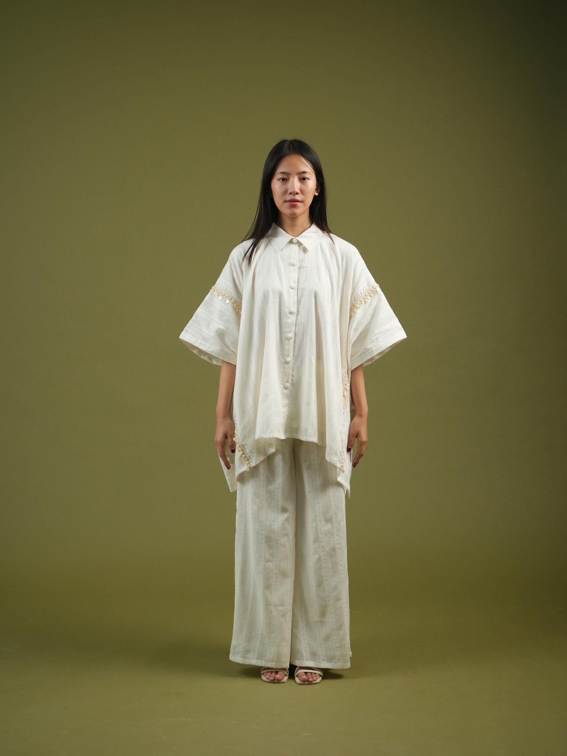 Flowing Ivory Cape Shirt & Wide-Leg Pants Set
