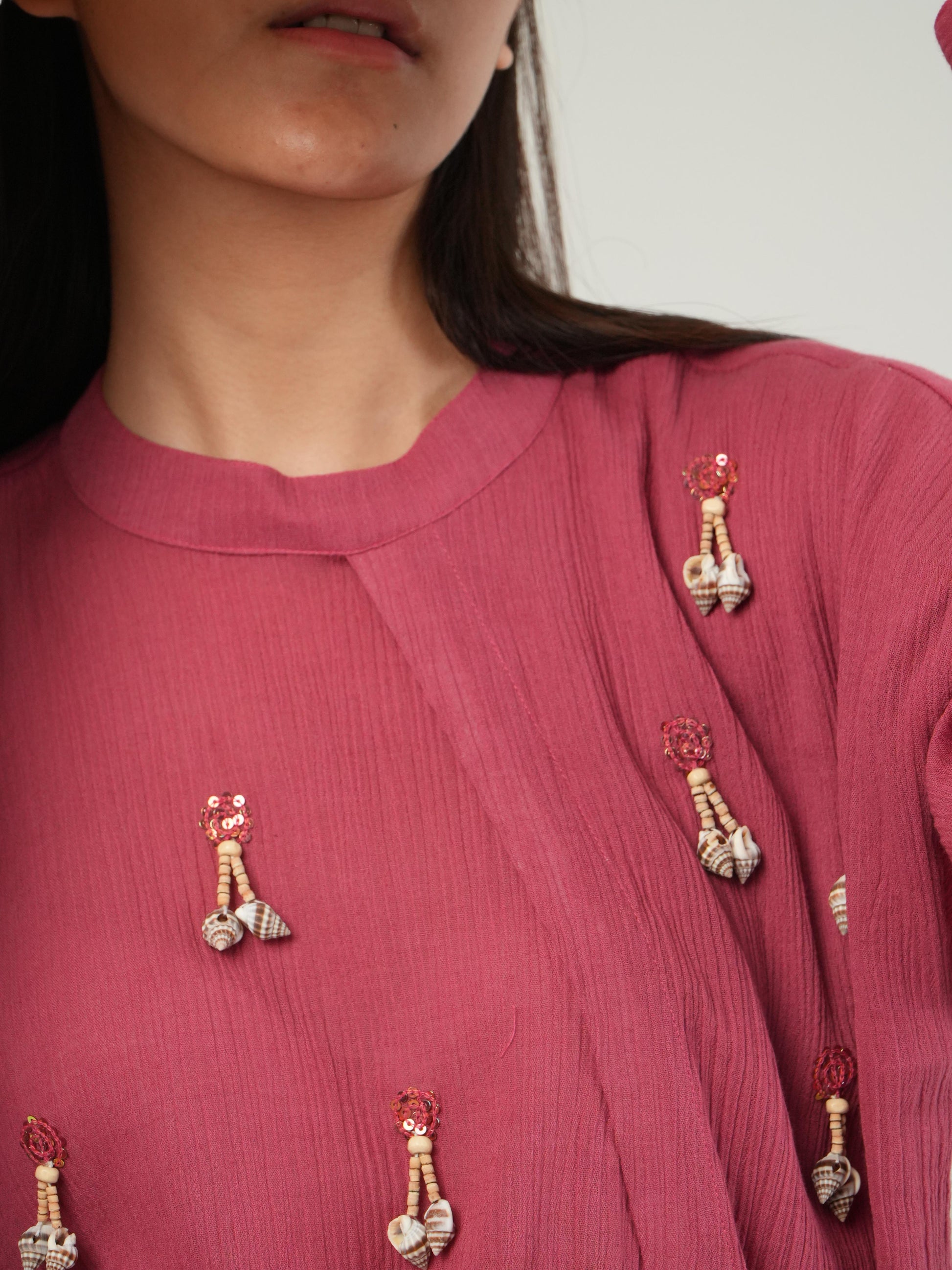 The embellishments on the top add a subtle sparkle, enhancing the outfit's uniqueness.